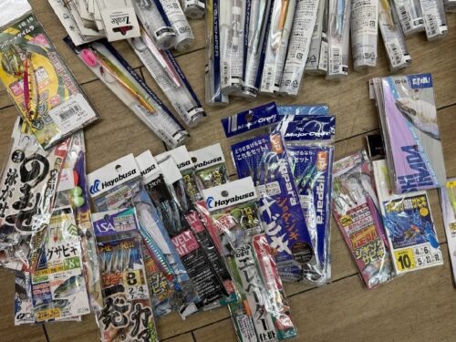 先日、釣り用の仕掛けやルアーなどの釣具をまとめてお持ち込みいただき、お買取りさせていただきました。
