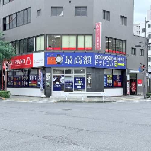 最高額ドットコム高松店は、高松市中心部・フェリー通りと県道の交差点角に位置し、駐車場も完備。アクセス抜群の立地で、お買い物やお出かけの際にも立ち寄りやすい店舗です。皆さまのご来店を心よりお待ちしております。