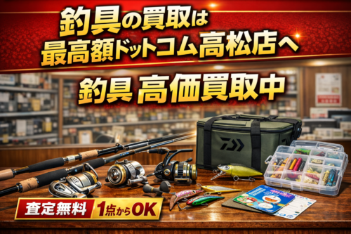 高松市の買取専門店 最高額ドットコム高松店では、ロッド・リール・ルアーなどの釣具の買取を強化中です。